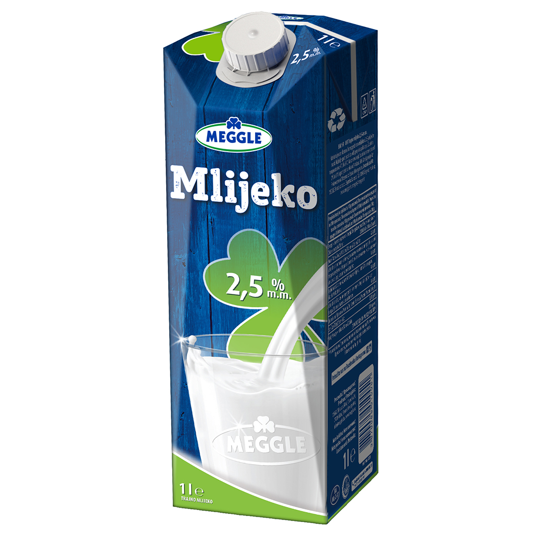 MEGGLE trajno mlijeko s 2,5 % mliječne masti u pakiranju od 1 l zadovoljit će gotovo sve ukuse i potrebe svih ukućana. U slučaju da vam treba veća količina mlijeka ili, primjerice, želite izbjeći one mrske situacije kada vam ujutro uz kavu ponestane mlijeka, a vi ste zaboravili kupiti novo – pripremili smo vam zbirno pakiranje (SIX PACK) od 6 komada po 1 l mlijeka.